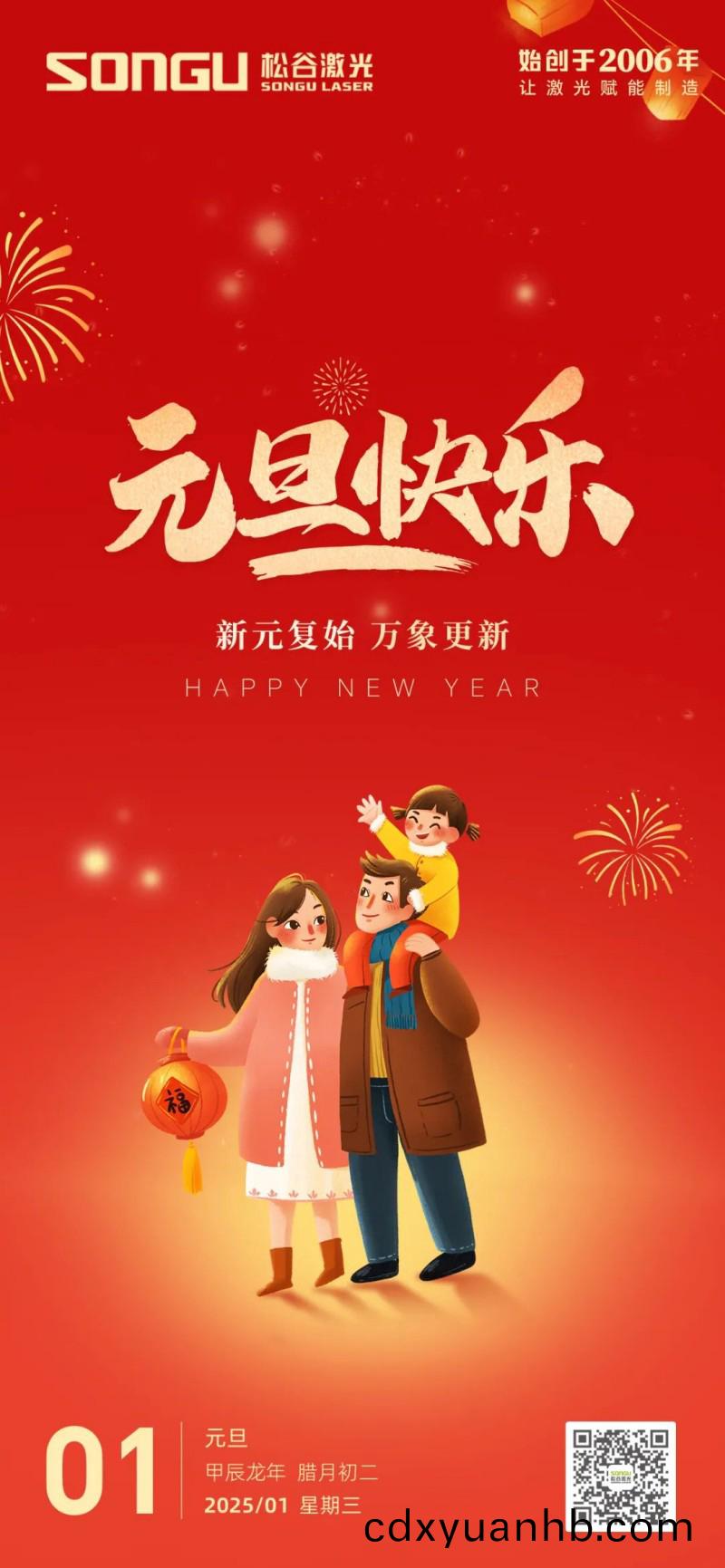 随(sui)着岁月(yue)的脚步悄然迈进,我们满怀激动与憧憬,共同迎来了充满希望的2025年元旦。在这个辞旧迎新的美好(hao)时刻,松谷激(ji)光科(ke)技向全体员工、合作伙伴以及一直以来给予我们支持与信任的朋(peng)友们致以(yi)最诚(cheng)挚的祝(zhu)福和最深切的感谢!